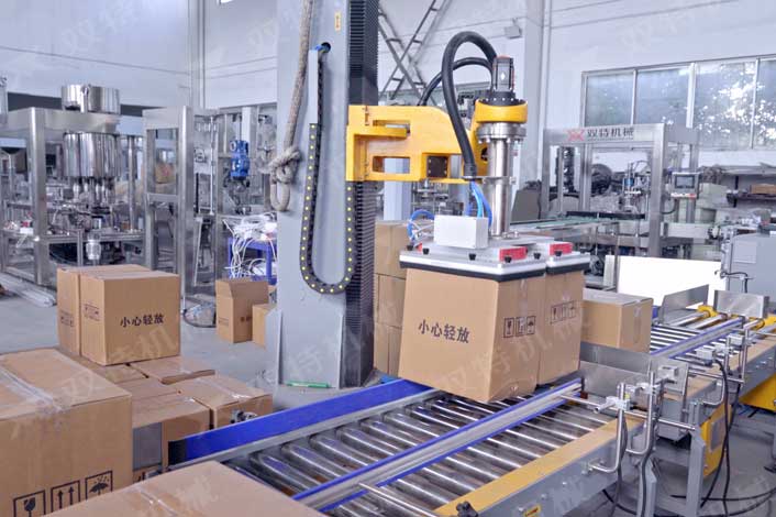 機(jī)器人碼垛系統(tǒng)主要針對包裝線的后道碼垛而設(shè)計,機(jī)器本身占地小,重量輕,功能全面,可以再不同的環(huán)境下使用。